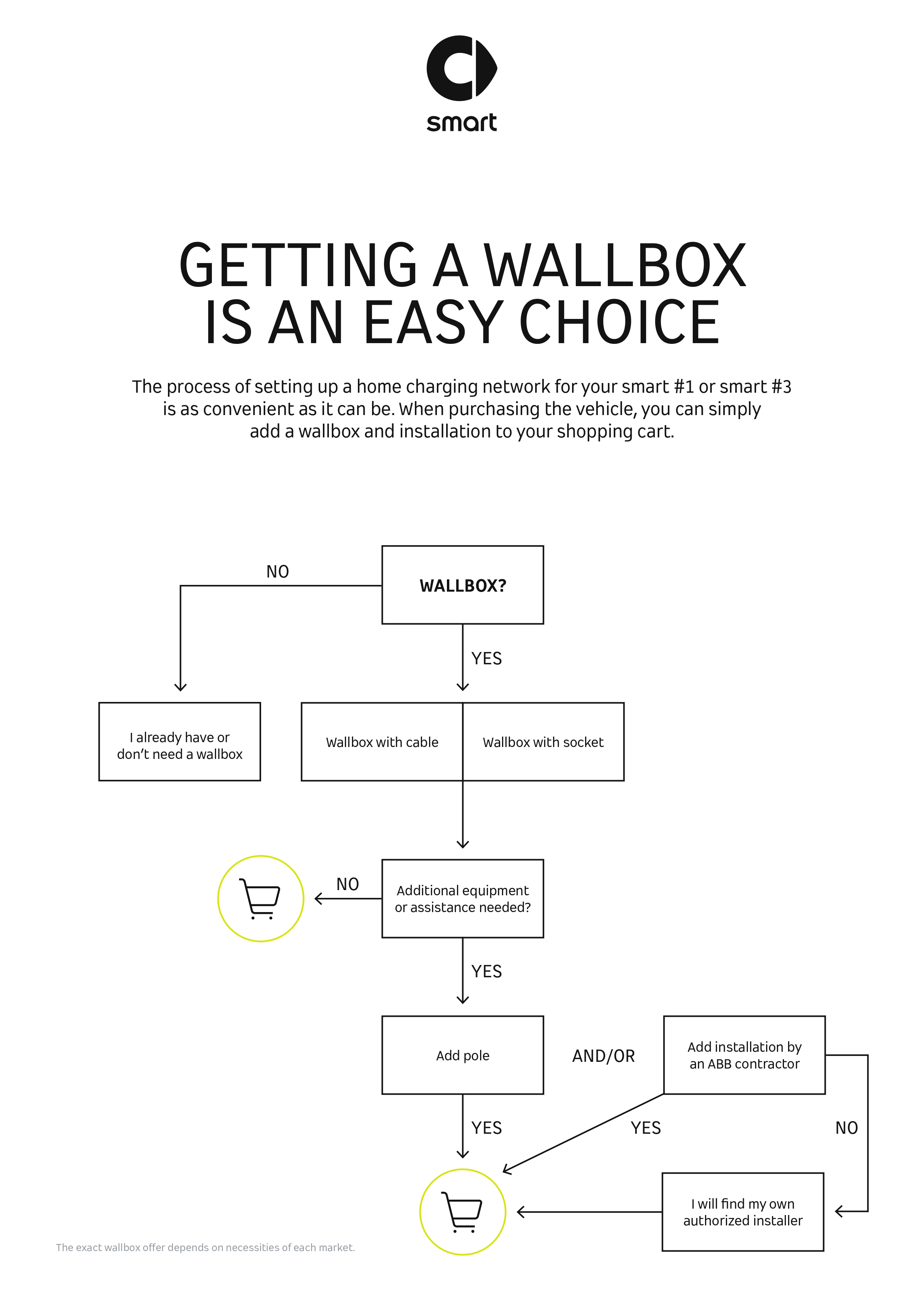 Park, jump out, plug in: charging an electric car at home could really not be easier, so it is no surprise that most EV drivers prefer charging at home over charging en route.1 For comfortable, fast and secure home charging, a wallbox is essential. So smart is offering a charge@home wallbox that fits seamlessly into the digital lifestyle of smart #1 and smart #3 drivers2. To ensure the best possible offer, smart has teamed up with an experienced premium provider of battery charging solutions: ABB E-mobility.