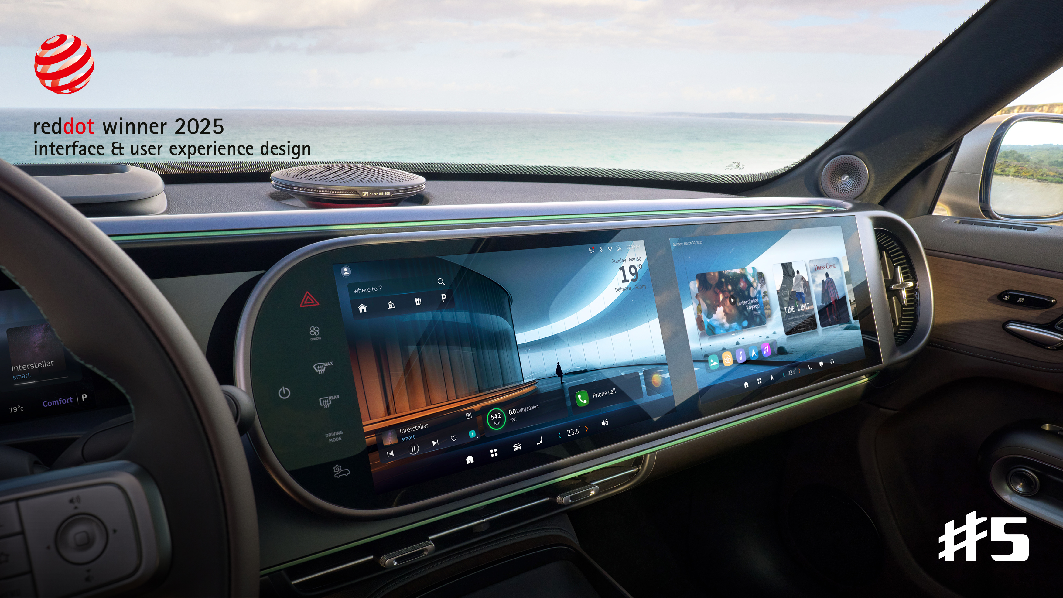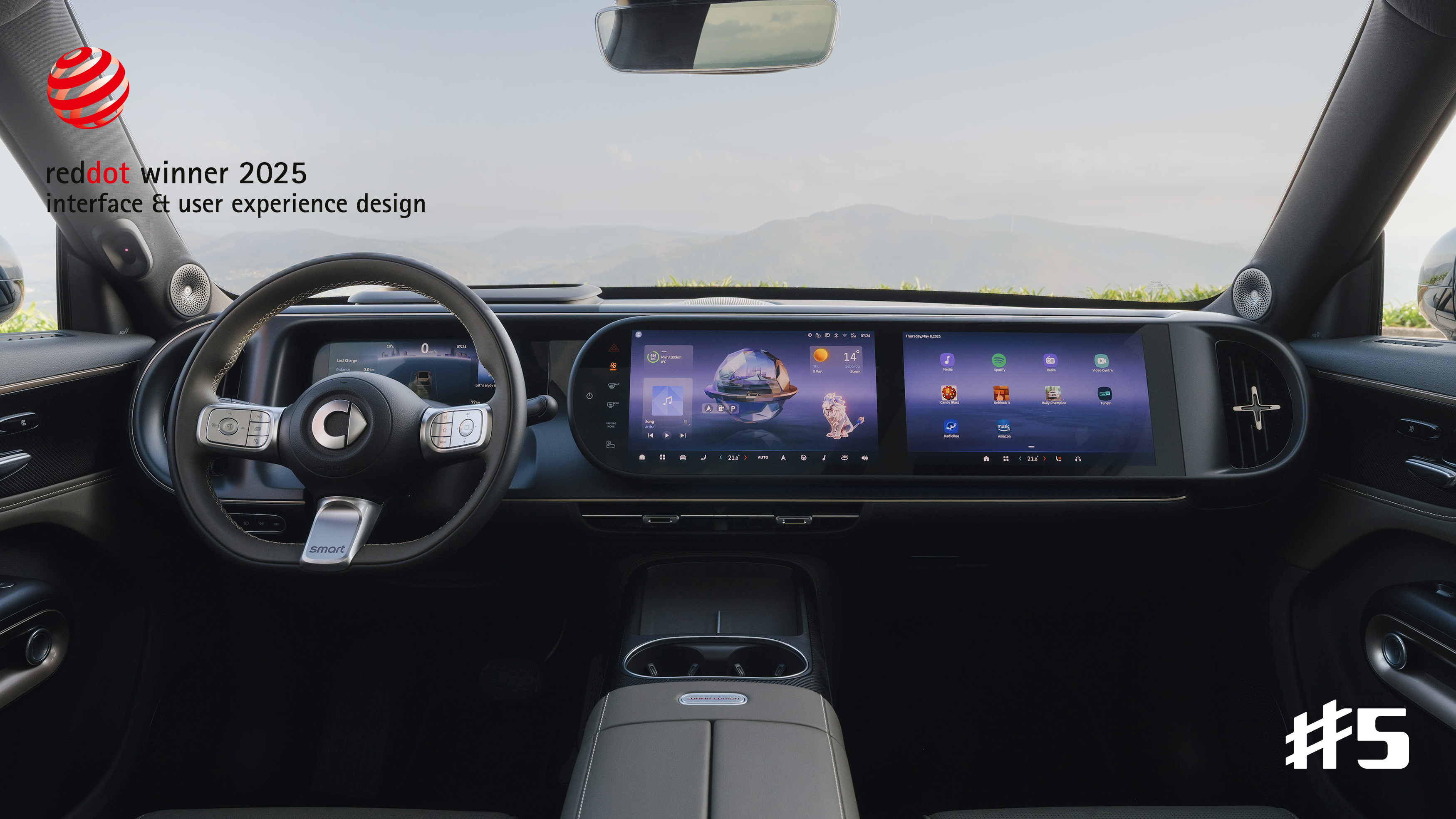 The smart #5 has been honored with the “Red Dot Award: Brands & Communication Design” for its human-machine interface (HMI)