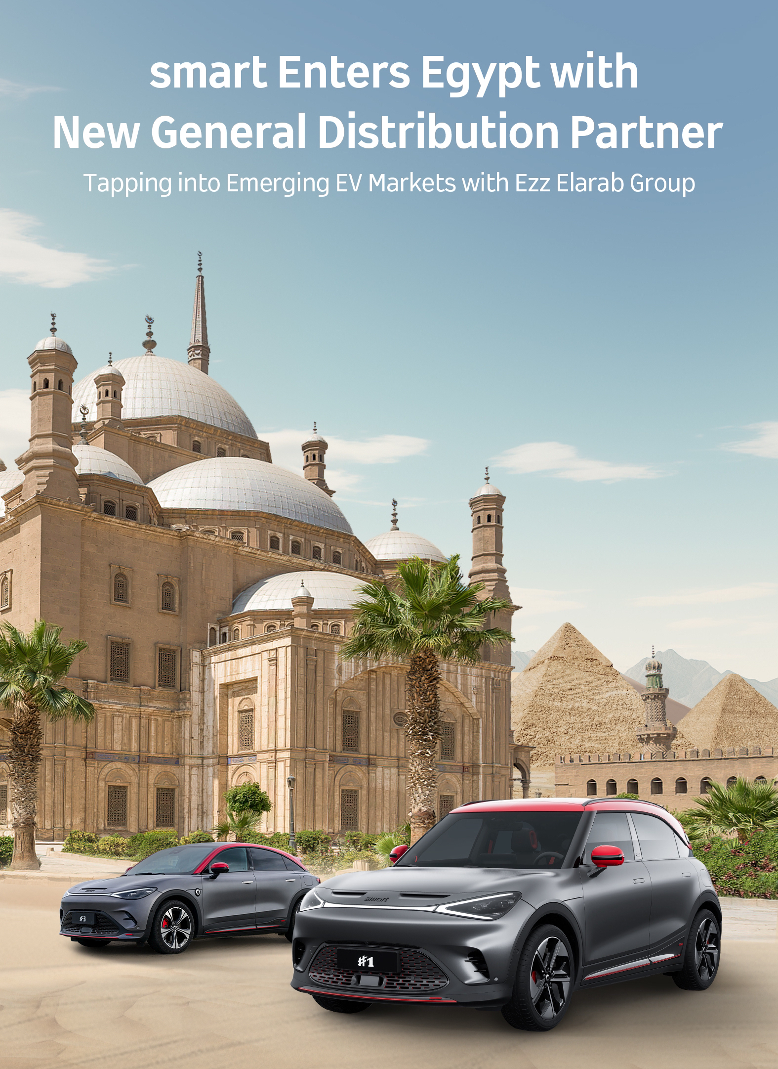(April 22, 2024, Cairo/Beijing) Resolute with its plans for ongoing global business growth in 2024, the new-premium intelligent all-electric auto brand, smart, today announced its upcoming entry into the Egyptian EV markets. Signing milestone letters of general distributor agreement with Ezz Elarab Star, smart will provide the Egyptian markets with premium all-electric vehicle sales and after-sales services, together with a comprehensive selection of offerings. To cooperate with Ezz Elarab Star, smart will also expand its business to two locations (sales and aftersales) situated in the East and West of Greater Cairo. The smart #1 and #3 are expected to be launched in the Egyptian markets in Q3 of 2024.