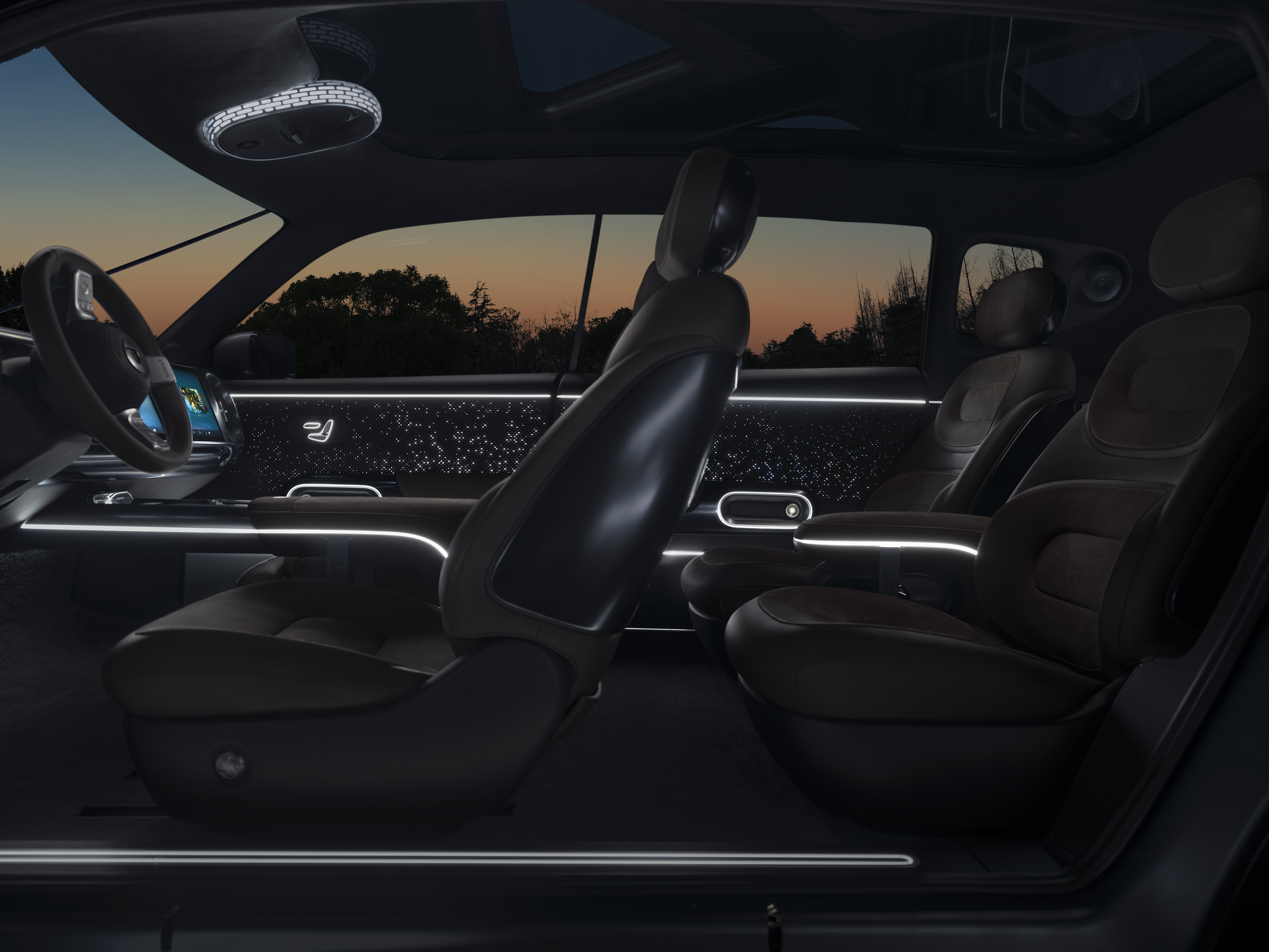 Comme le veut la tradition smart, le Concept smart #5 séduit par un maximum d'espace et de confort ambiant pour tous les passagers. L'utilisation d'éléments alignés horizontalement et d'interfaces bien disposées pour le contrôle de toutes les fonctionnalités crée une impression de clarté et d'organisation dans tout l'intérieur et garantit une expérience agréable pour l'utilisateur. Au cœur de cet habitacle technologiquement avancé se trouve une large console dotée d'une nouvelle interface homme-machine et de deux écrans intégrés de technologie OLED. Alimentés par la puce AMD V2000 haute performance, ces écrans offrent un accès optimal aux nombreuses fonctions du véhicule. L'éclairage d'ambiance et des fonctionnalités, telles qu'un haut-parleur portable intégré à la console centrale, s’ajoutent au charme du véhicule. Le siège passager avant à gravité zéro offre une combinaison innovante de confort et de sécurité. Le siège est équipé de nouvelles solutions d'airbags, offrant une grande sécurité en cas de collision. Le siège intègre également des fonctions de confort telles que le chauffage, la ventilation, les fonctions de massage et un repose-jambes.
