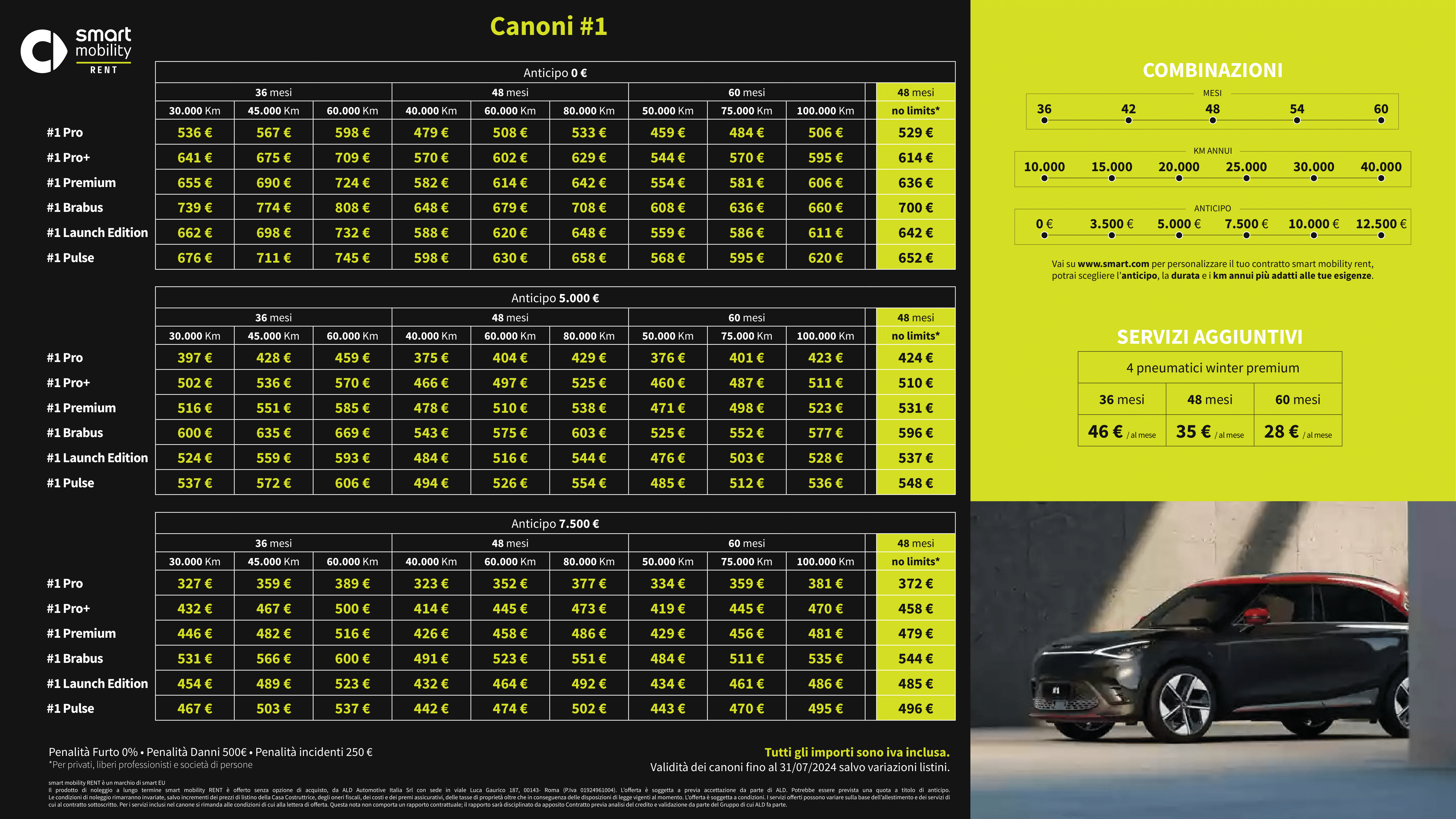 16.07.2024 - Le nuove smart #1 e #3 aggiungono l'ultimo grado di libertà alle opzioni di noleggio. Da oggi smart lancia, infatti, un'importante novità nella sua gamma di soluzioni di mobilità: l'introduzione dell'opzione di noleggio a chilometraggio illimitato.