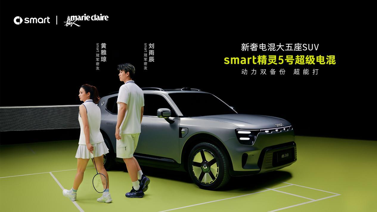 新车搭载最新一代雷神电混2.0技术,可油可电,动力双备份,加上源自奔驰的底盘调校技术和全系标配的120多项豪华配置,拥有超稳的性能和能耗表现、平顺丝滑的操控、宝宝安睡级的静谧性、低至3毛钱一公里的亏电油耗、最长1615km综合续航,和羽毛球冠军夫妇在赛场上一样能打,堪称20万元内豪华插混唯一选择和史上最能跑的smart。与此同时,黄雅琼、刘雨辰的年轻活力与smart #5 EHD超级电混目标人群的气质相得益彰,他们不断拼搏的精神,与smart #5 EHD超级电混的用户以及精灵密友对美好生活的追求也不谋而合。