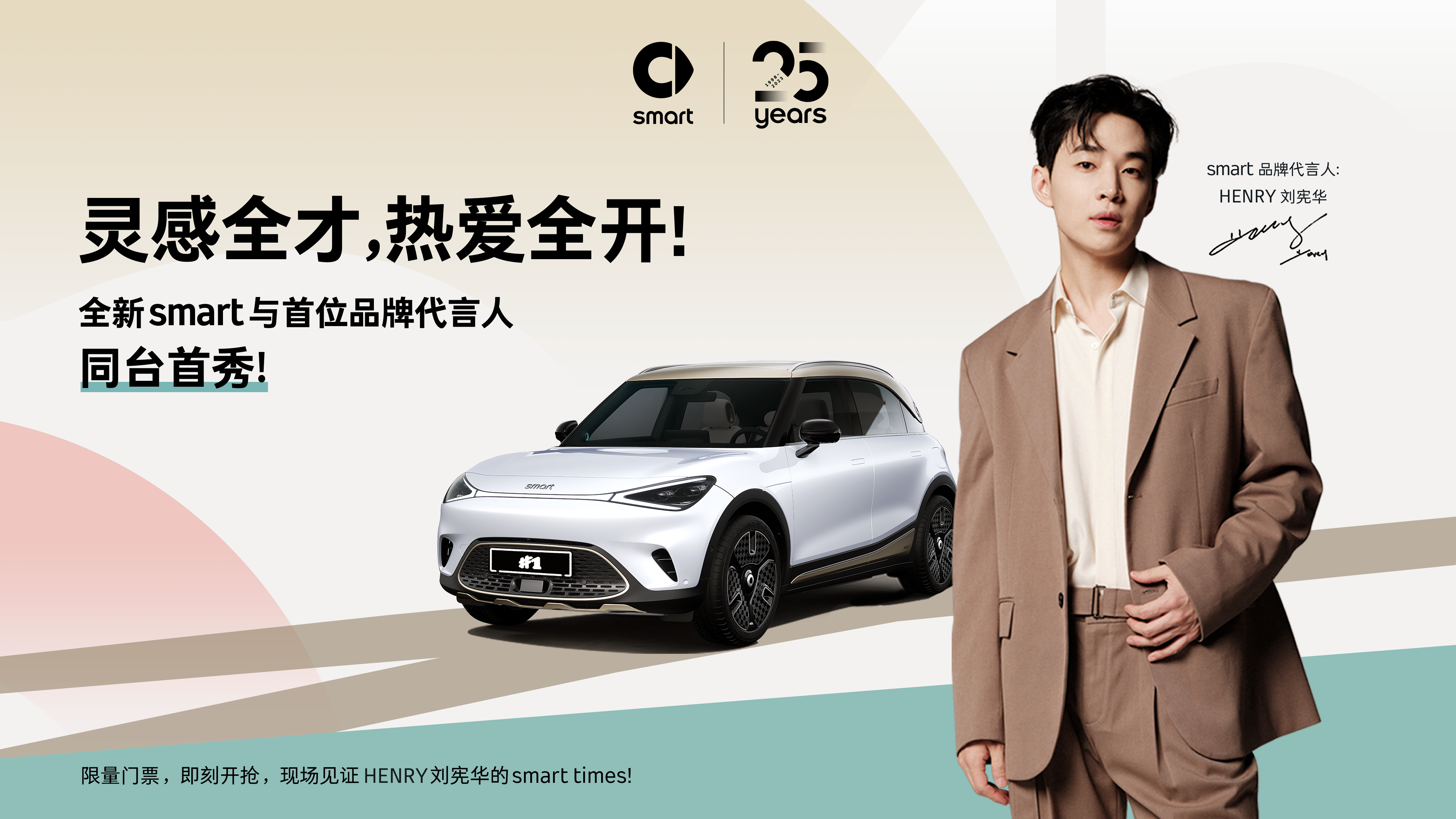 今年是smart品牌25周年。从诞生起,smart 始终与品牌爱好者们保持密切联系,并通过smart times与大家分享热爱瞬间,交流先锋思想,激发未来灵感。历经20多年发展,smart times已成为全球极具规模和影响力的车主聚会。10月21日,smart 25周年全球粉丝嘉年华-smart times 2023将以“灵感”为名,打造堪比“超级碗”的车圈盛典。除了刘柏辛、米卡、李宇春三位当红艺人亲临助阵,跨界全才HENRY刘宪华,将作为smart纯电时代的首位品牌代言人重磅登场。作为业界“行走的乐器库”,刘宪华的粉丝几乎都是“才华粉”。从练习生到创作人,他坚持“热爱”,拒绝被定义,在“灵感”的指引下,不断追求探寻新的人生可能。
