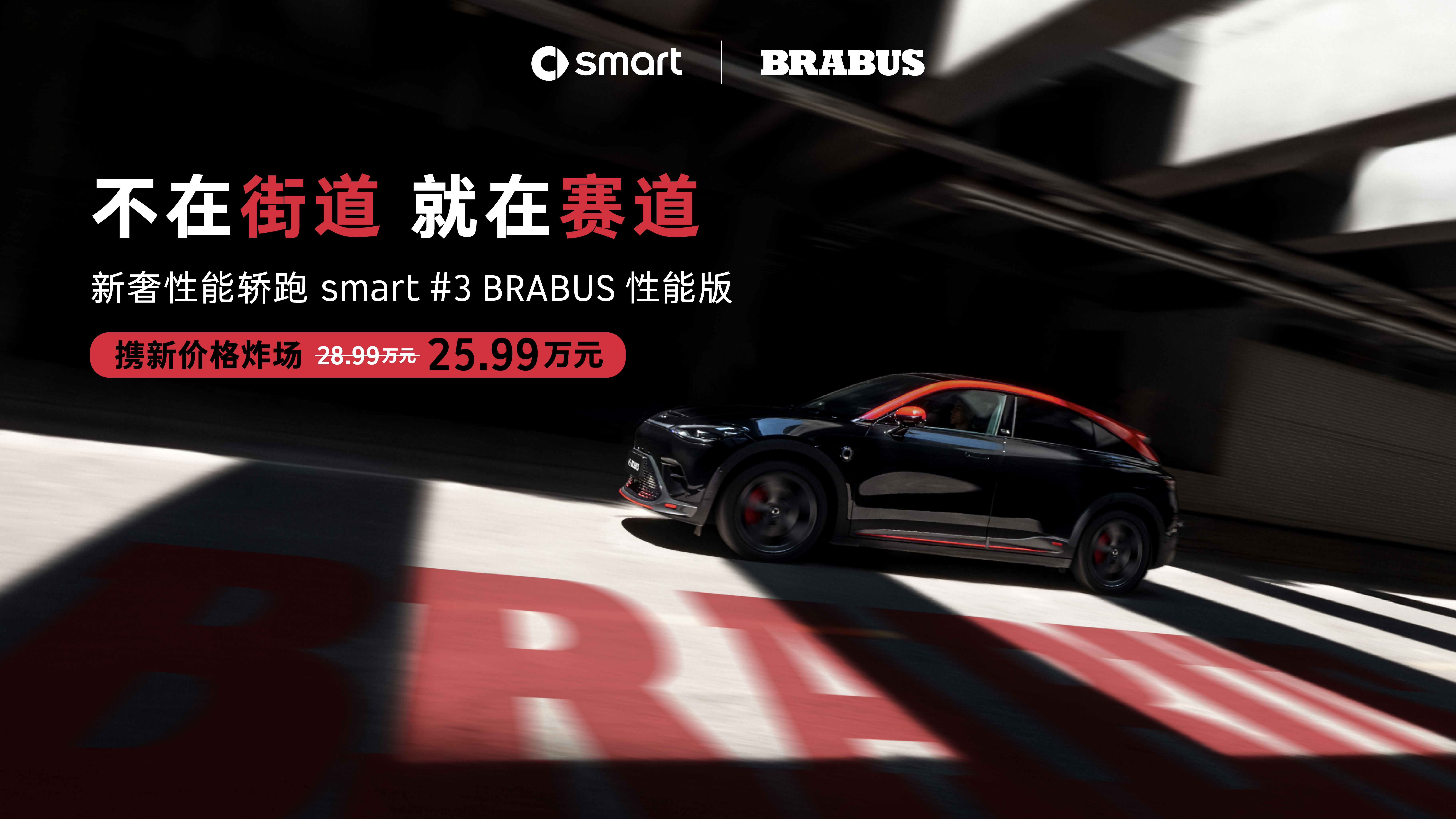 smart 精灵#3 BRABUS性能版,由smart携手奔驰御用改装厂BRABUS联合打造,专为热血玩家而生。全车拥有34处BRABUS专属设计,信仰标识清晰可辨。BRABUS Design专属运动外观套件配合红色流光粒子格栅、动感尾翼与碳纤维细节,静止时亦锋芒毕露,随时随地准备出发。