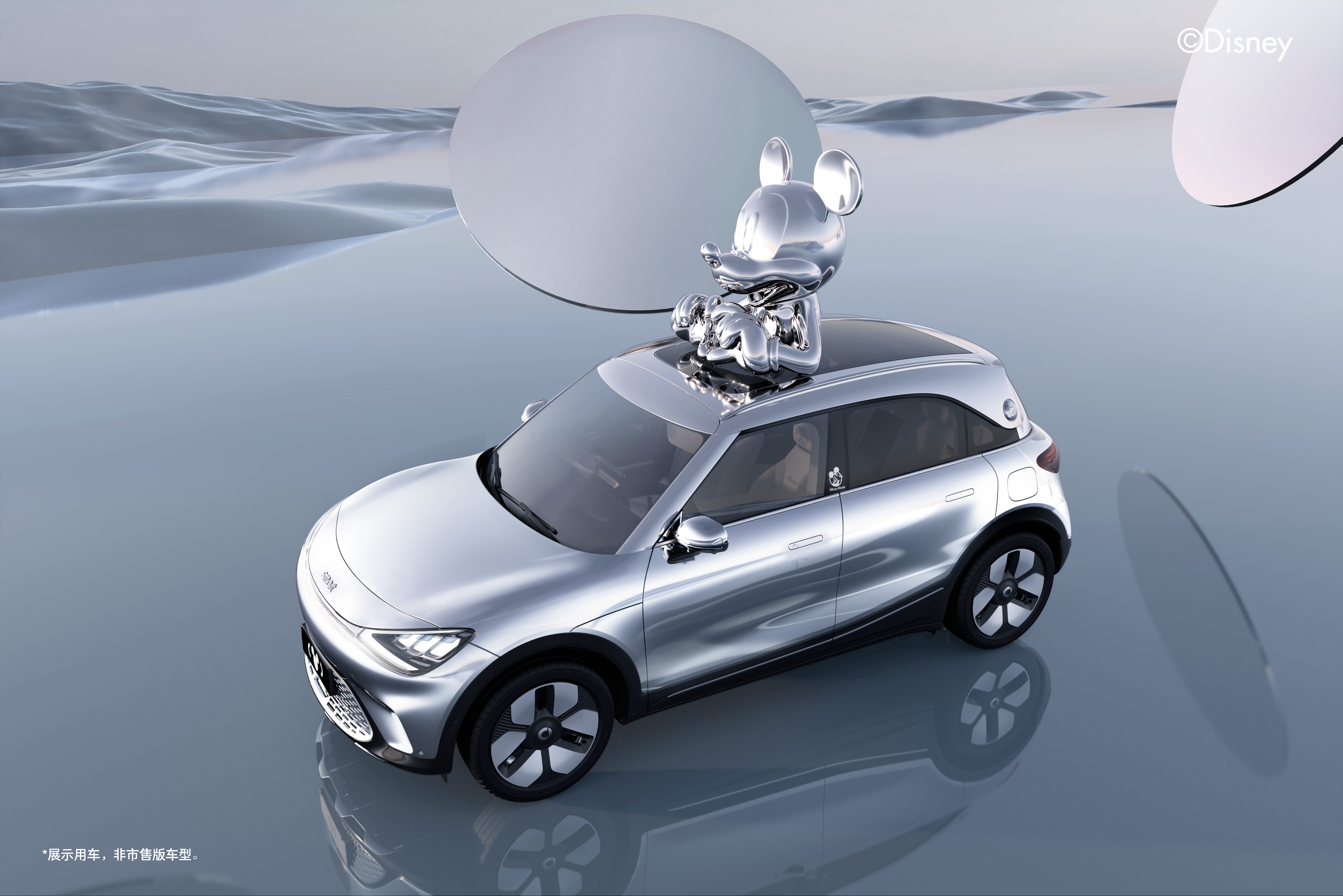 smart米奇限定艺术车基于刚刚上市的smart #1 经典焕新款打造,全车巧妙融入了10余处米奇元素,将迪士尼经典IP与smart经典新奢设计完美结合,以灵动出奇的姿态,为密友开启脑洞不设限的载梦之旅。
