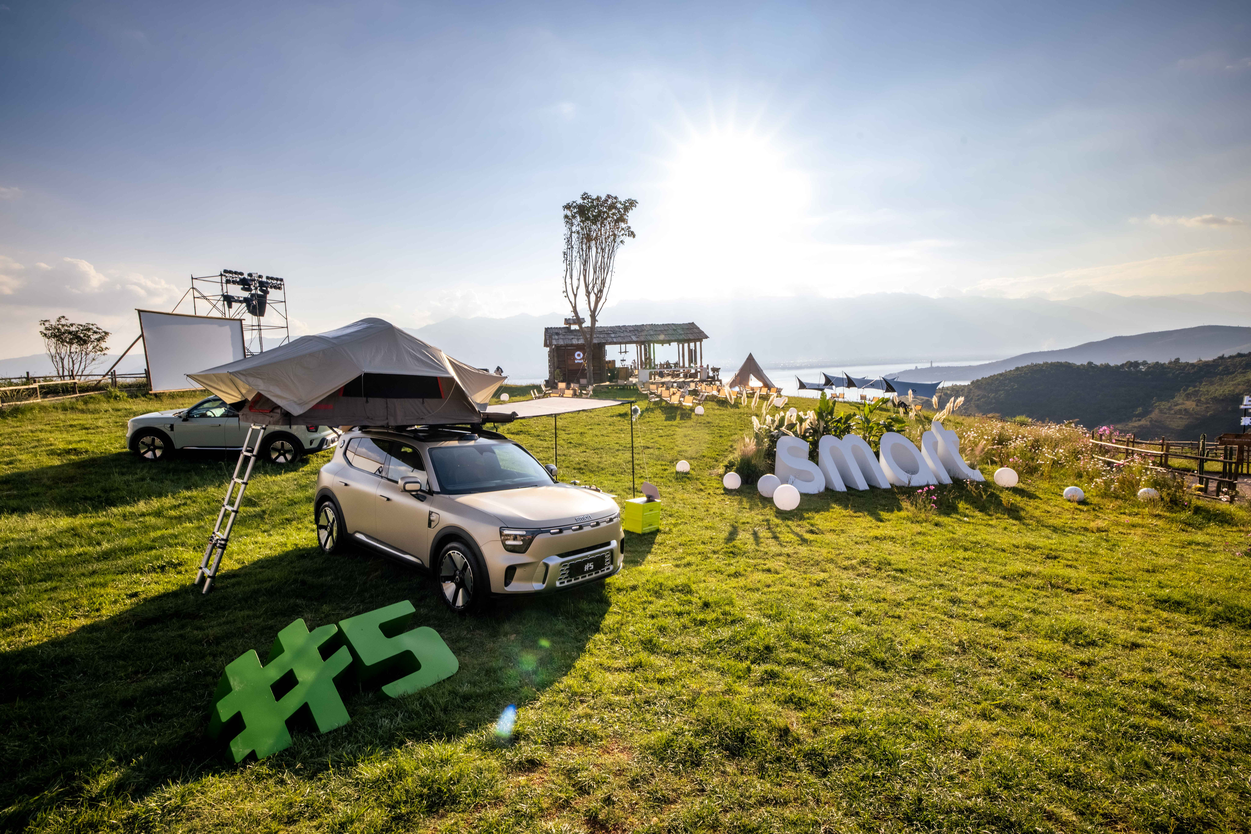 山水相逢的旅途抵达终点,人与车的惊喜却仍在继续,全新smart精灵#5迁徙抵达大理“新奇5营地”,定制化互动区域,为迁徙之旅后的「新奇5城客」,带来一场充满奇趣的户外豪华派对。行业首创的车规级全彩激光投影仪与行业首创的原车全场景便携HiFi音箱,让城客在星空之下、山野之间,可以随时开启一场酣畅淋漓的游戏PK,也可以静赏一场精彩的电影;兼具豪华与实用功能的”户外奇旅探险包”可拓展更多趣味玩法,随处都可成为「新奇5城客」的专属营地。